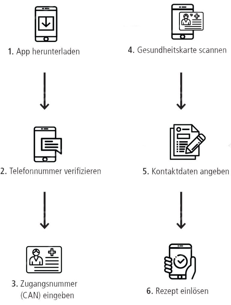 Elektronische Gesundheitskarte über unsere App einlesen, E-Rezept abrufen und Medikamente erhalten